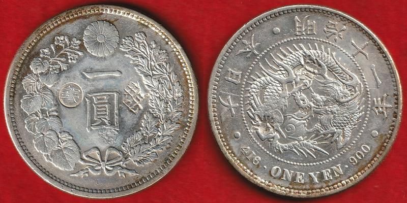 明治11年 新1円銀貨 左丸銀 荘印有り
