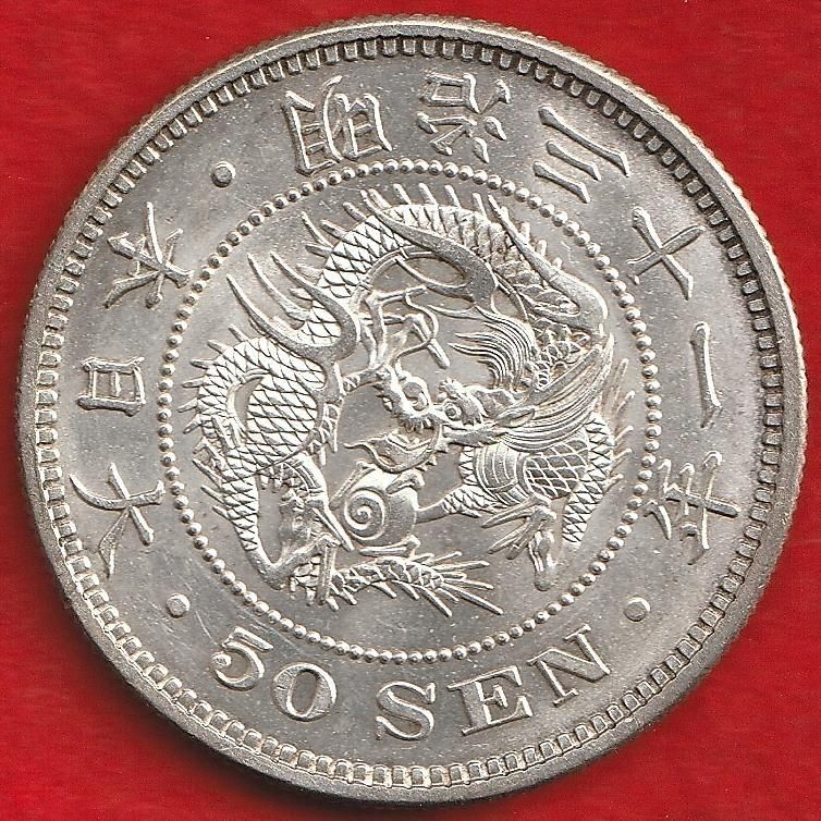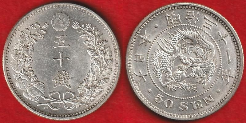 明治31年 龍50銭銀貨 上切